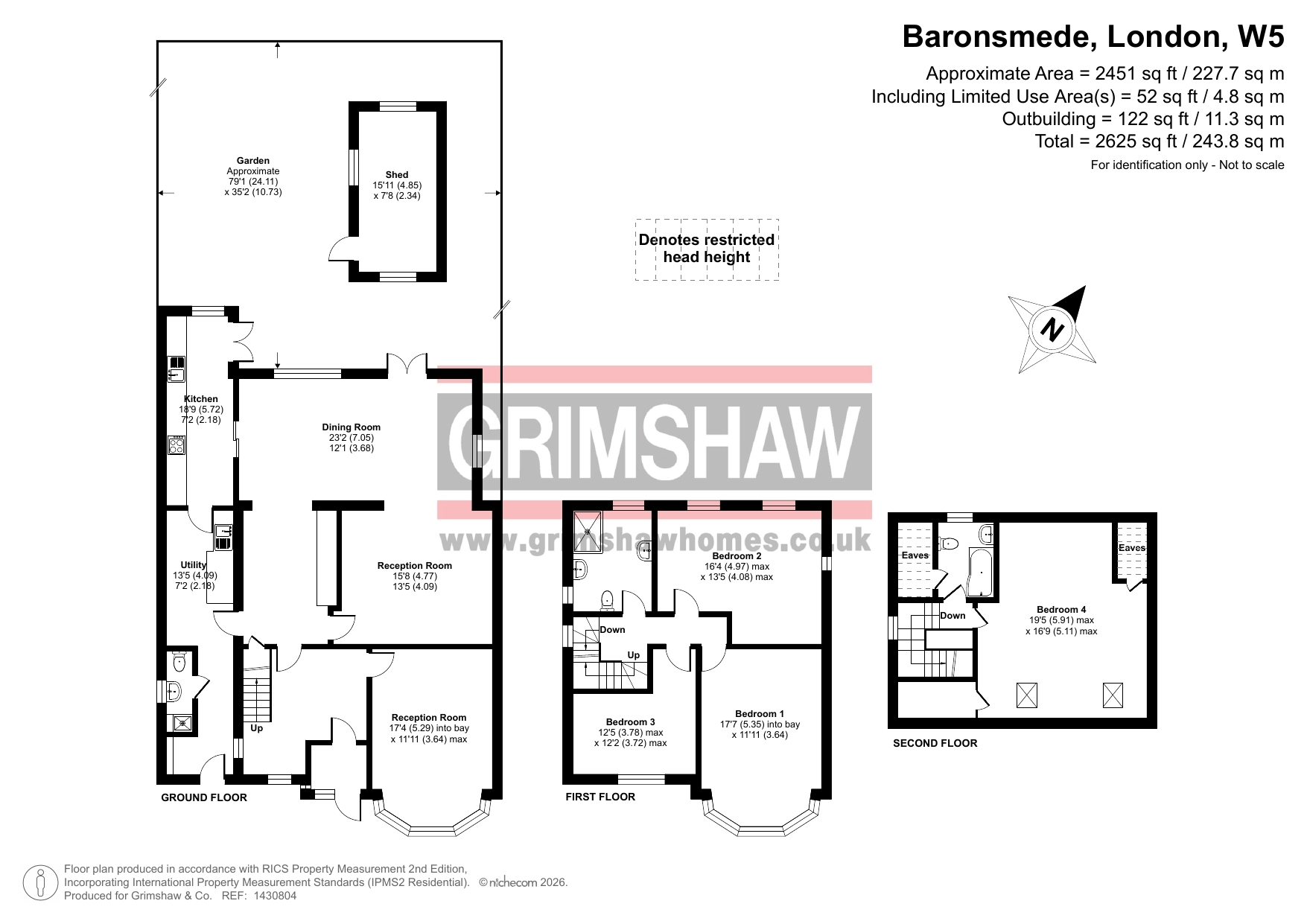 - Large rear lawn garden of approx 79ft