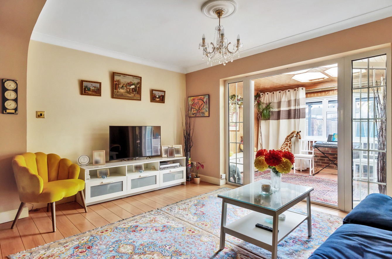A much-enlarged 4-5 bedroom semi-detached house arranged over three floors with loft conversion, ground-floor extension, forecourt parking and garden room at the rear.